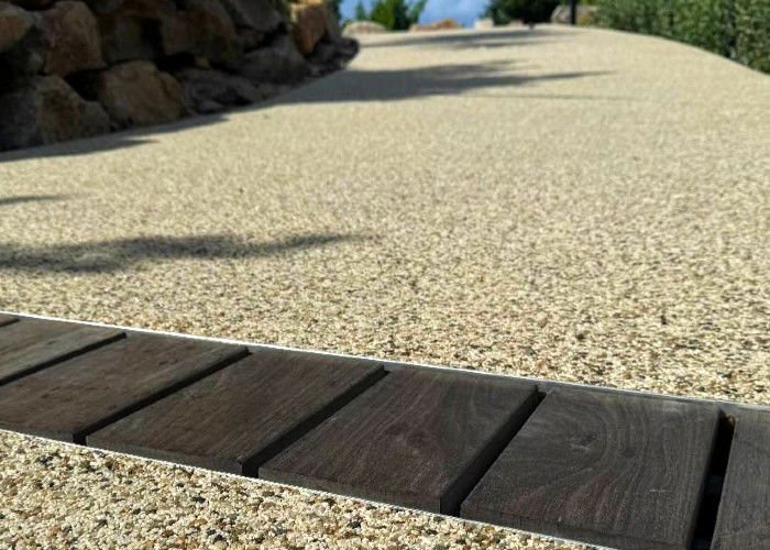 Vuba Stone es un sistema avanzado de recubrimiento Resin-Bound, líder mundialmente por su tecnología y calidad. Consiste en combinar resina de alto desempeño con agregados naturales como cuarzo, mármol o granito. El resultado es una superficie continua, sin juntas, muy atractiva visualmente y completamente permeable. Al permitir que el agua drene rápidamente, el sistema previene charcos y reduce el riesgo de inundaciones.